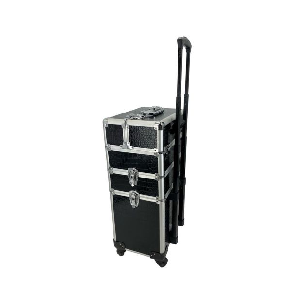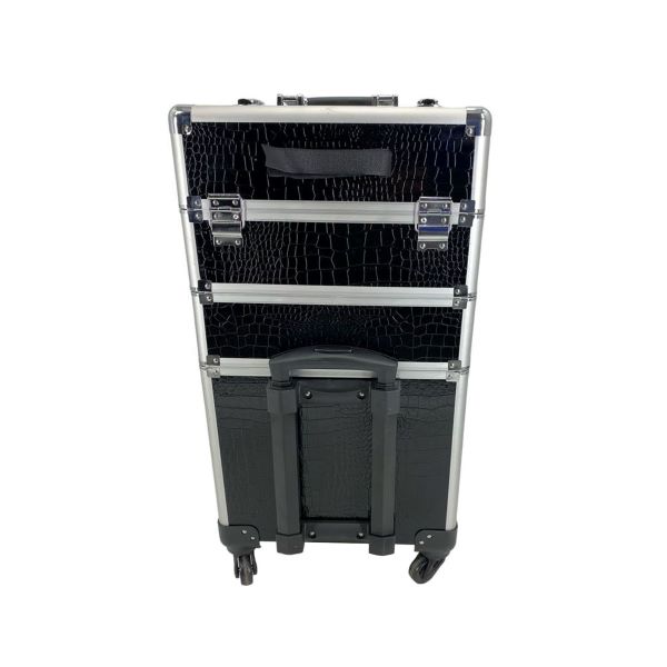 Make-Up Carry Case - Black Croc (Large) with Pull up handle