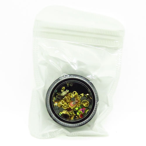 Nail Art Jewelry Pot - Mixed 3D Gold Decorations #08