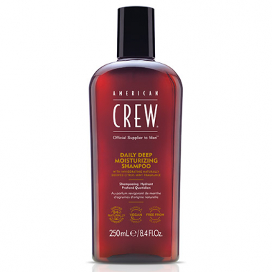 Daily Deep Moisturizing Shampoo is a hair and scalp wash rich in conditioning emollients that leaves hair feeling soft all day without causing build-up or greasy hair. The ultra-hydrating formula cleanses while the naturally certified American Crew Citrus Mint signature fragrance energizes and invigorates. Infused with moisturizing Vitamin B5 to promote healthy looking hair, this vegan, silicone-free shampoo is suitable for daily use on normal to dry hair.