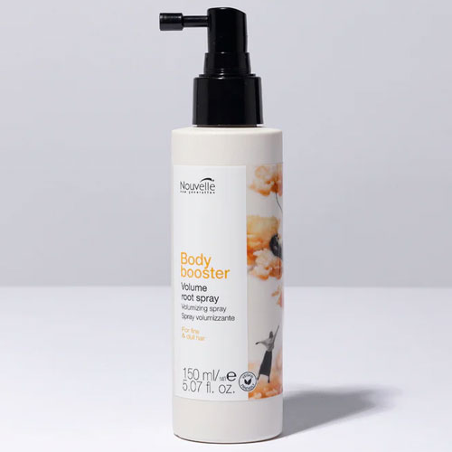 The Nouvelle Body Booster Volume Root Spray is the perfect solution for fine and thin hair that needs a boost in body and volume. This lightweight leave-in spray adds fullness and thickness to your hair without weighing it down, giving it a natural shine and a soft, voluminous finish. Ideal for daily use, this spray transforms dull, flat hair into voluminous locks that feel full and look radiant. Whether you're prepping for a casual day out or a special event, Nouvelle Body Booster gives you the volume you desire with every application.