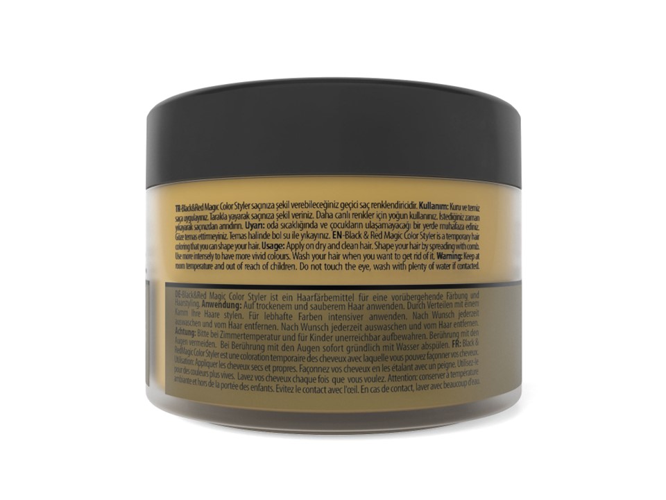 Express your style and achieve a unique look with Black&Red Golden Yellow Colored Hair Styling Product, which allows you to shape your hair and add a golden yellow color. It also provides a unisex concealing effect!