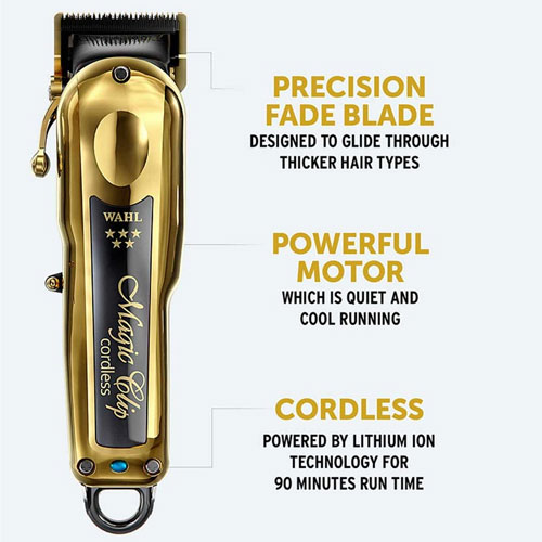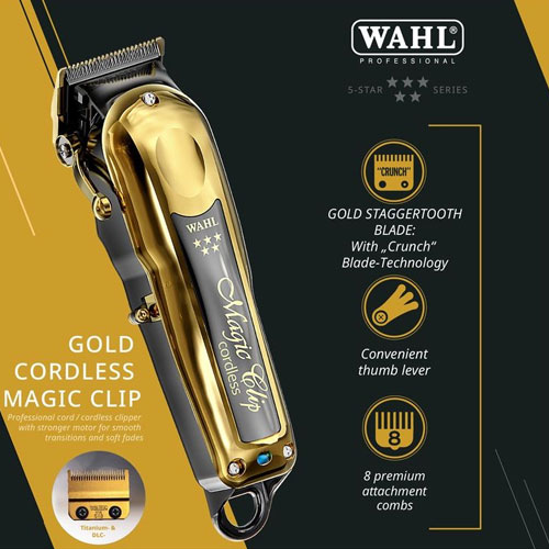 The Wahl 5 Star Series Gold Cordless Magic Clip® takes barbering to the next level with unmatched power and innovation. Designed for professionals who demand excellence, this clipper features a powerful motor capable of handling even the thickest hair types with continuous cutting strength. Whether dealing with wet, dense, or textured hair, this clipper performs without slowing down.