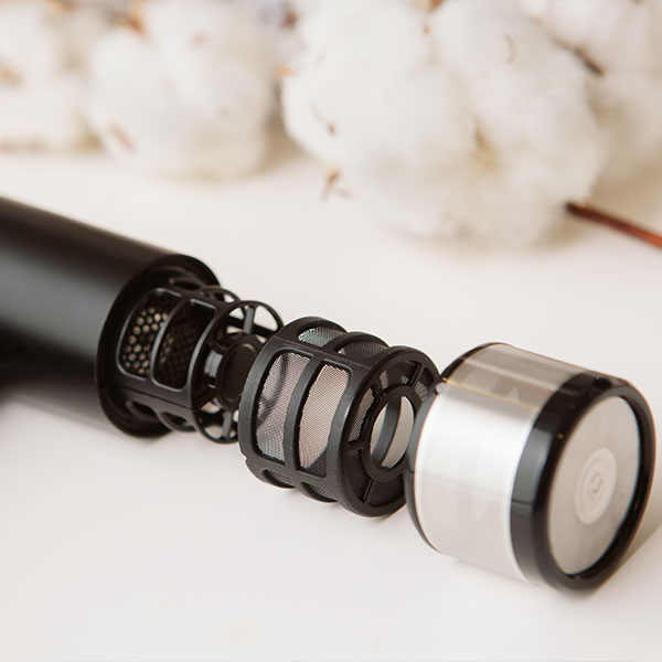 Engineered for professionals, the iQ2 features a Turbo function that boosts airflow to 120,000 rpm, reducing drying time and enhancing productivity. The Venturi Effect amplifies airflow without extra power consumption, while Standby Technology ensures comfort and energy efficiency by automatically pausing operation when placed on the included Smart Pad.