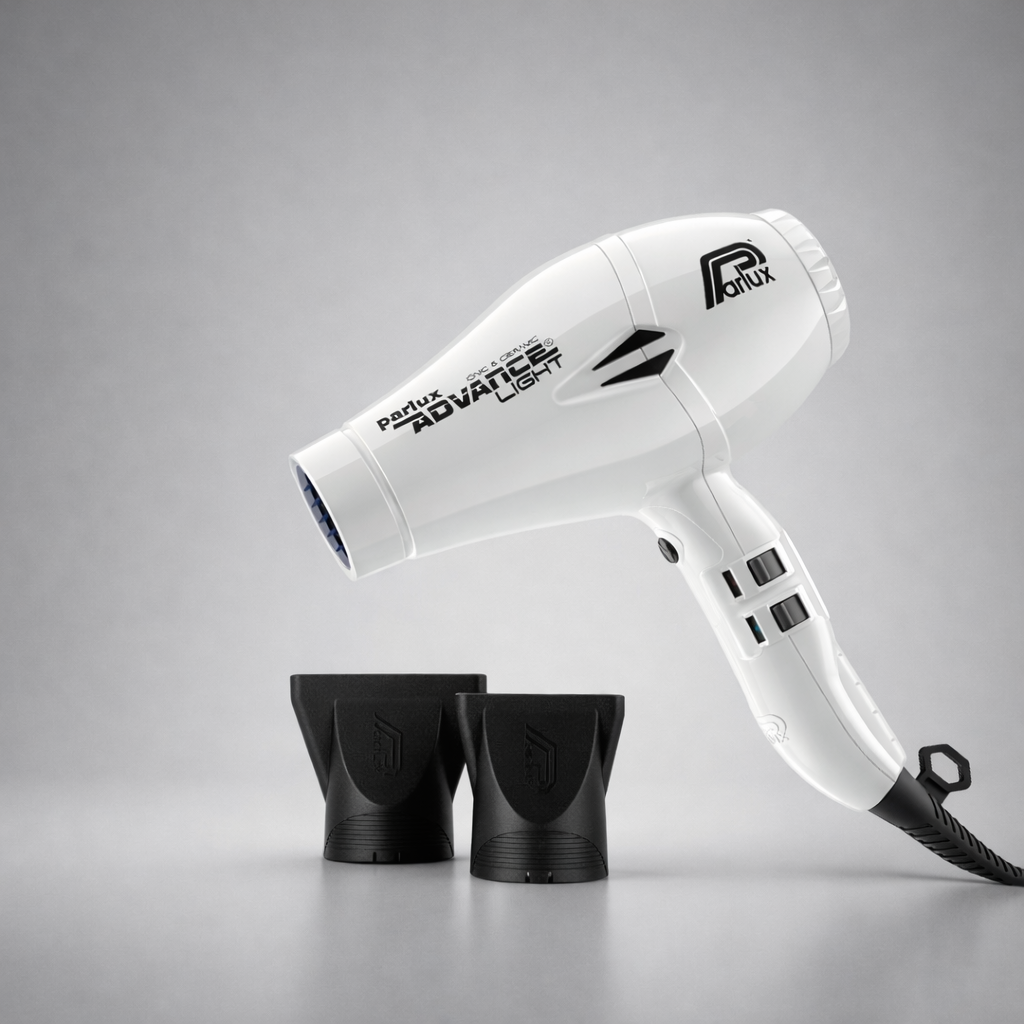 The Parlux Advance Light 2200W hair dryer in White features a powerful and lightweight design, with a long life motor, ergonomic shape, and multiple temperature settings. The Ionic & Ceramic Technology helps reduce frizz and promote healthier hair.
