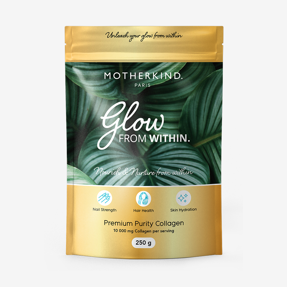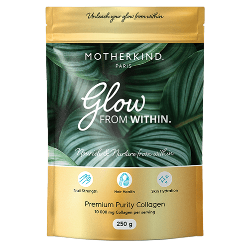 Motherkind Glow From Within is premium pure hydrolysate collagen peptides. Collagen makes up 70% of your dermis, therefore, providing your body with collagen may help maintain a healthy dermis in order to prevent thinning of hair and to rejuvenate hair loss. In addition, it plays a role in strengthening skin, plus may benefit both elasticity and hydration. Glow From within Collagen supports the integrity of our cartilage, supports in tightening, strengthening and toning the entire digestive system, and supports our sleep quality.