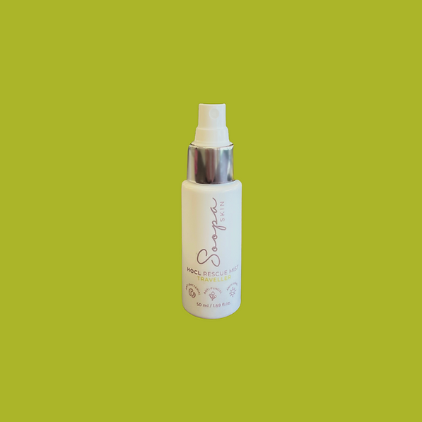 Soopa Skin HOCl Rescue Mist Daily is a fine spray-mist based on HOCl (Hypochlorous Acid), a molecule that preserves the skin's natural micro-biome, soothes, purifies and rejuvenates fragile, irritated and environmentally challenged skin - Elements for a Healthy Skin!
