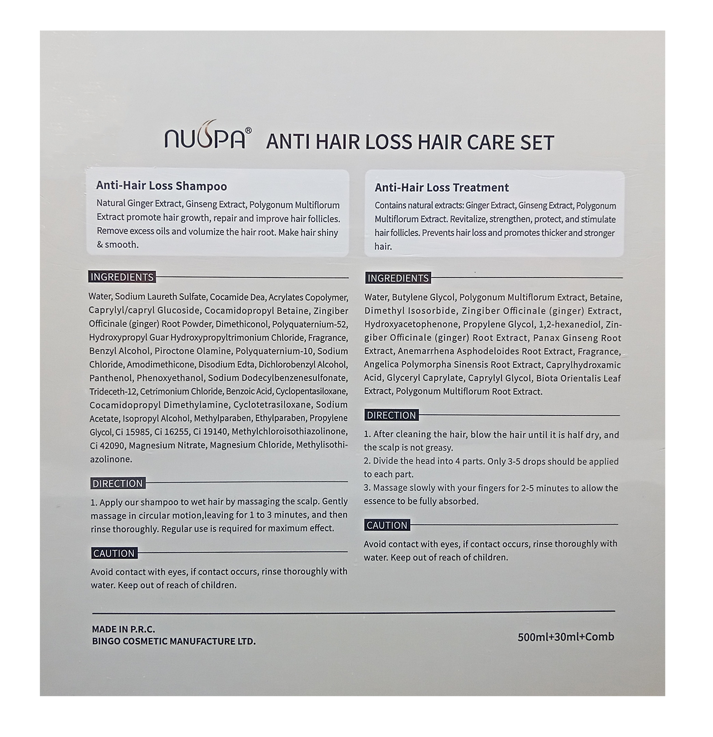 Combat hair loss and promote healthy hair growth with the NUSPA Anti-Hair Loss Kit. This comprehensive kit includes a 500ml bottle of NUSPA Anti-Hair Loss Shampoo, a 30ml bottle of NUSPA Anti-Hair Loss Treatment, and a specialized hairbrush. Formulated with potent ingredients known to nourish the scalp and strengthen hair follicles, this kit is designed to revitalize your hair and promote thicker, fuller-looking locks. Elevate your hair care routine with the NUSPA Anti-Hair Loss Kit for healthier and more vibrant hair.