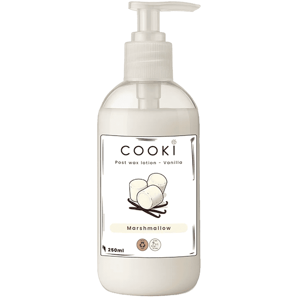 The COOKI Wax Post Wax Lotion – Marshmallow 250ml is specially formulated to calm and protect the skin after waxing. Enriched with moisturizing ingredients, it helps reduce redness and irritation while restoring skin comfort. Infused with a sweet marshmallow fragrance, it leaves the skin soft, smooth, and delicately scented. Perfect for professional salons and at-home waxing routines.
